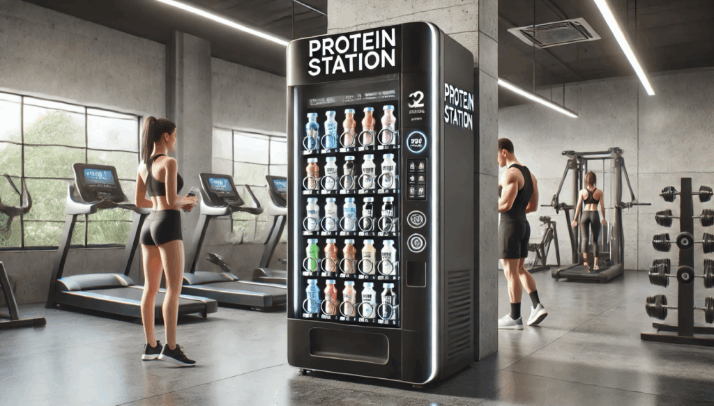 プロテイン自販機は、ジムやスポーツクラブの経営者、オフィス、大学、スポーツ系店舗などに対して、ヘルシードリンクを手身近に提供できる自販機サービスです。